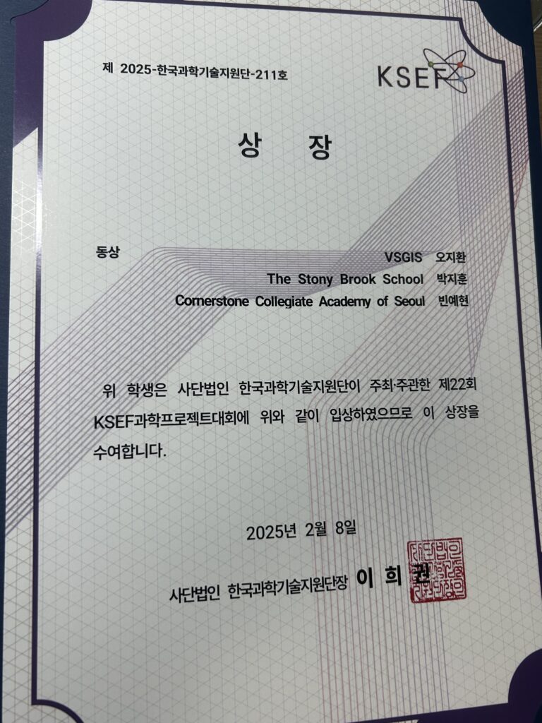 This is an international STEM competition that allows students to present and display their creativity through long term projects in their own criterias. I collaborated with two friends majoring in computer science , and I acted as a chemistry assistant.