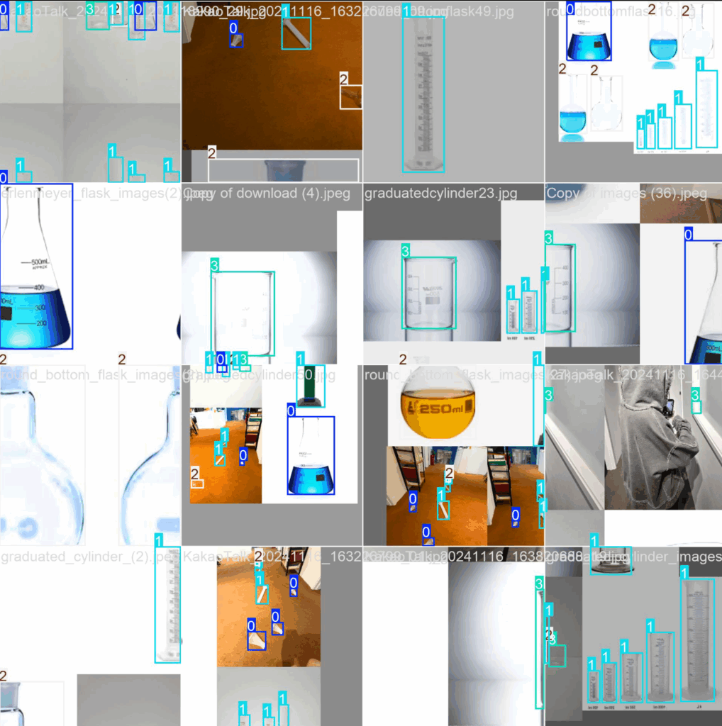 Just as shown in the picture, we took pictures of the glass apparatuses in various angles and locations, to train the AI to adapt best to any kind of environment. As the training quantity increases, the more accurate and meticulous the AI is trained.